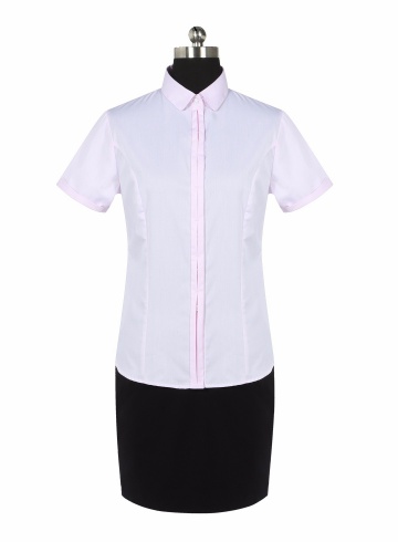 女式短袖粉色正規(guī)領(lǐng)襯衫