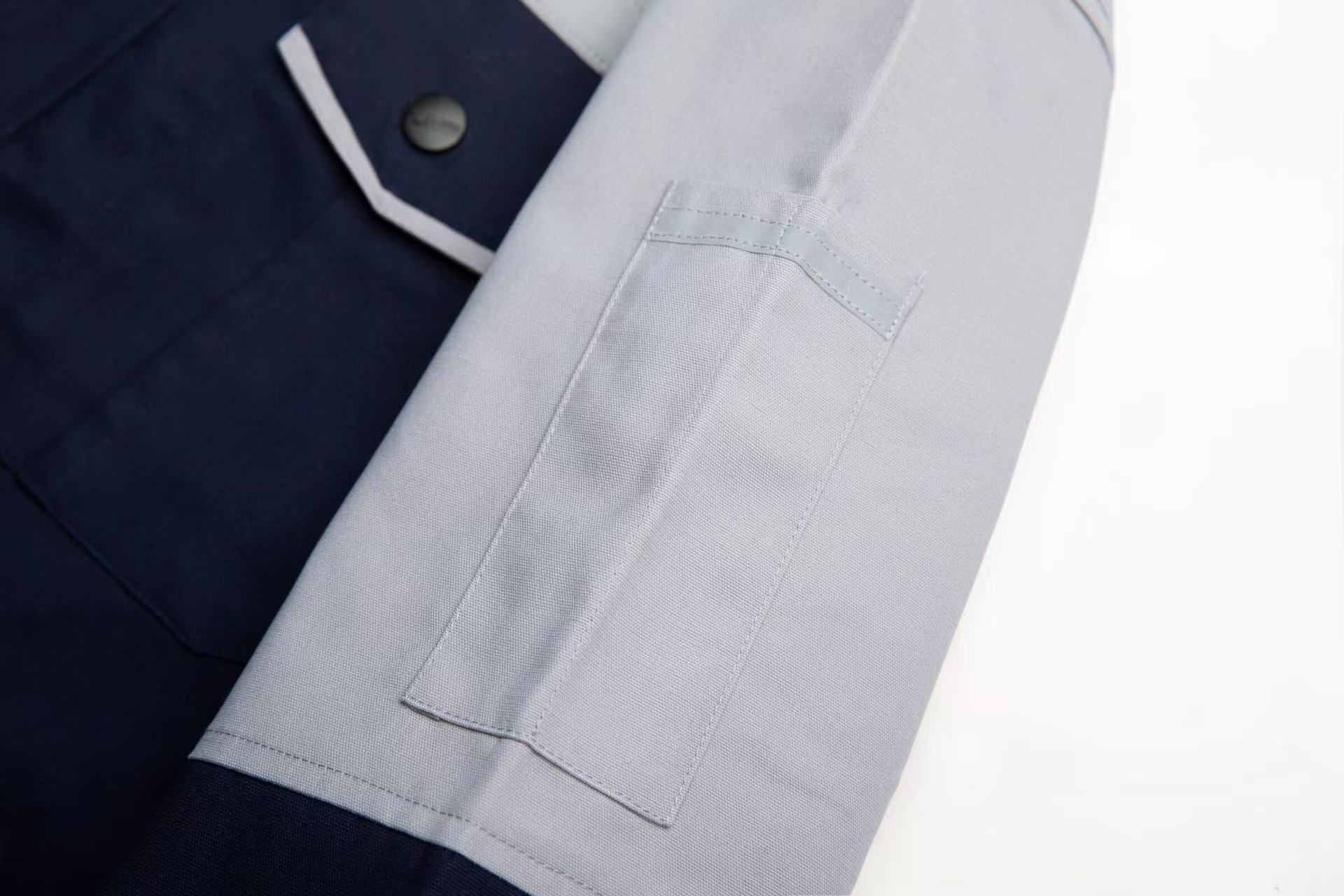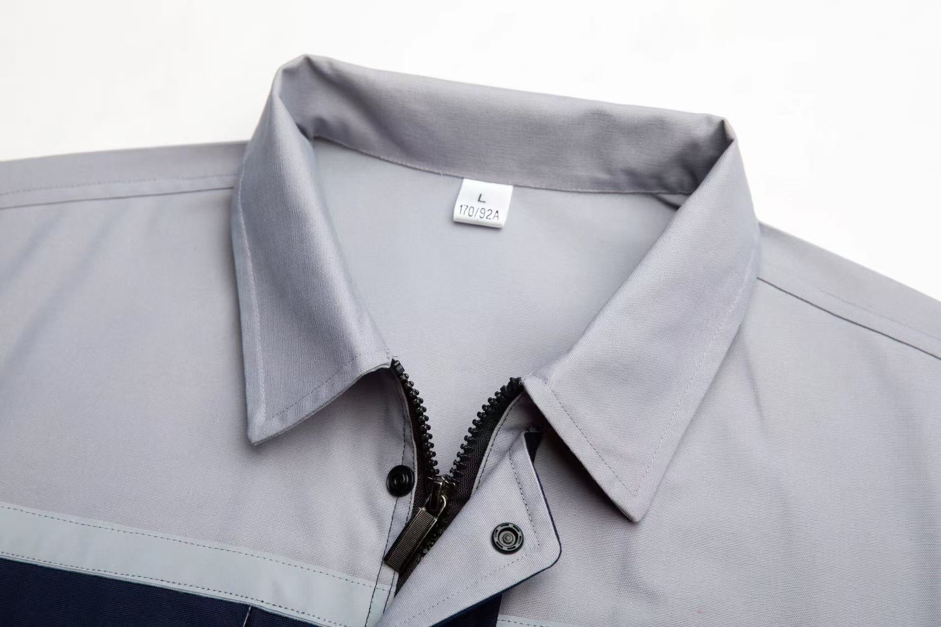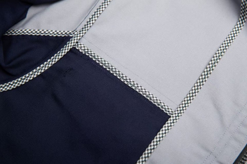 產(chǎn)品編號:FB001 鐵灰拼淺灰 品牌:云工依 面料:滌棉磨毛帆布42X21 72X40 T/C