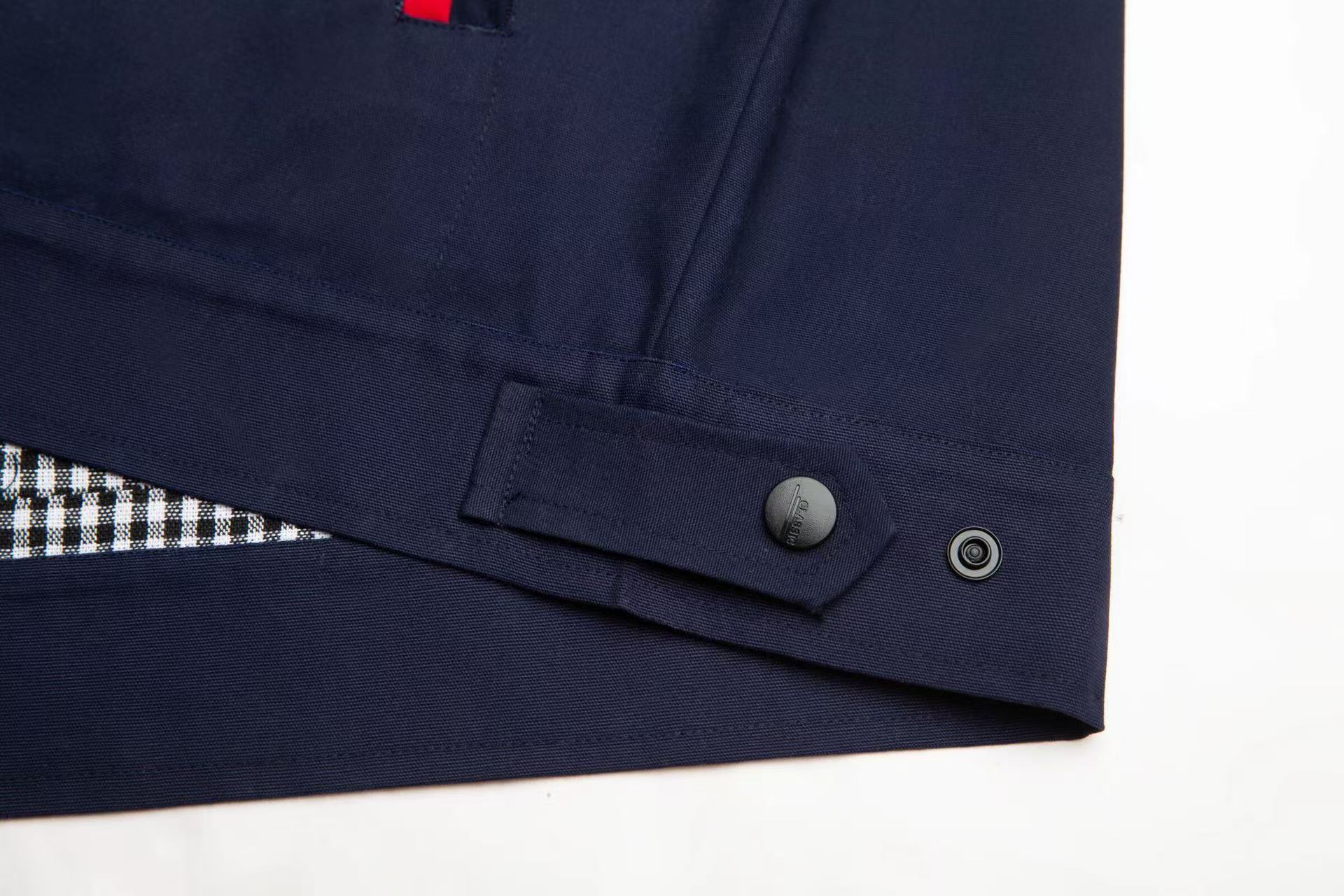 產(chǎn)品編號(hào):FB002 藏青拼淺灰格子里布 品牌:云工依 面料:滌棉磨毛帆布42X21 72X40 T/C