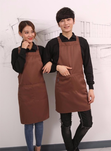 H帶工裝尼純色圍裙 淺咖