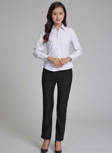 女式長袖襯衣 白色細(xì)斜紋