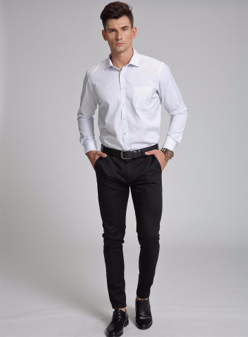 男式長(zhǎng)袖襯衣 白色粗條紋