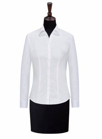 女式長(zhǎng)袖白色全棉免燙V領(lǐng)襯衫